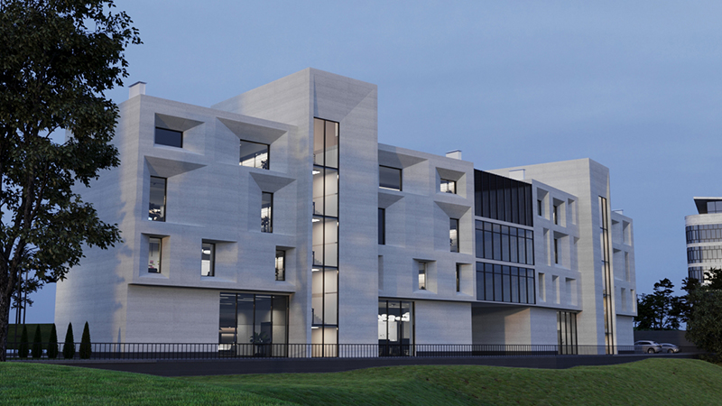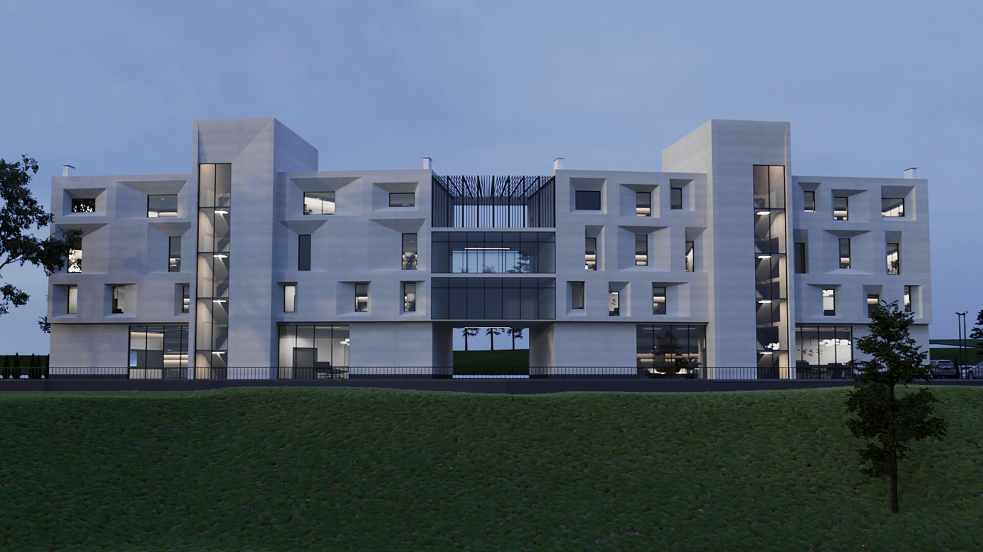 From the very first glance, this project will take your breath away. Its symmetrical cubic shapes, defined lines, and gentle colors create an enchanting visual experience. White travertine façade, spanning an impressive four floors and 750 sq. meters, exudes an air of elegance and sophistication that is hard to resist.