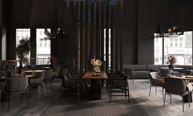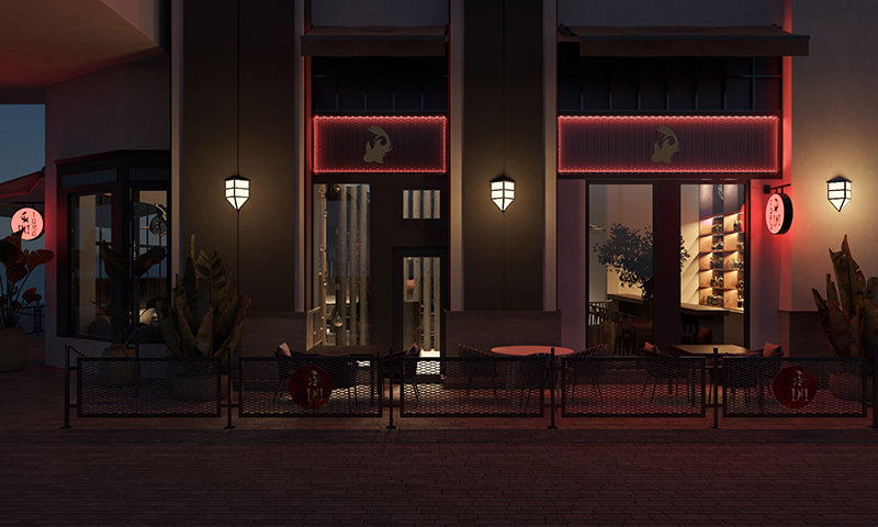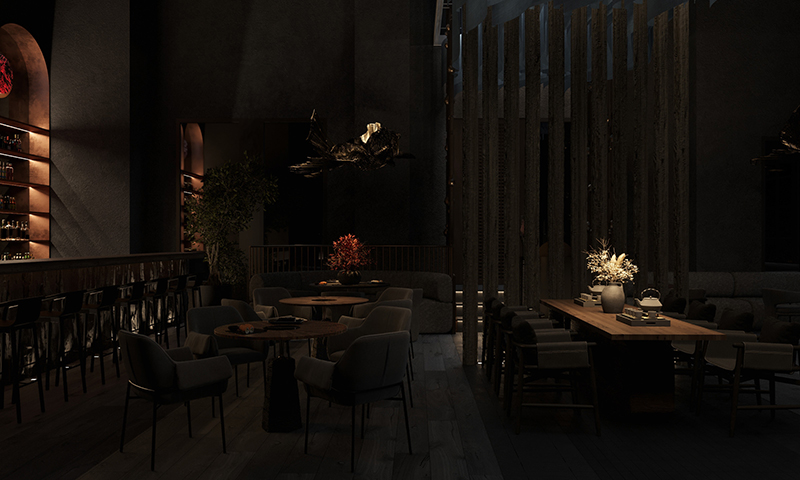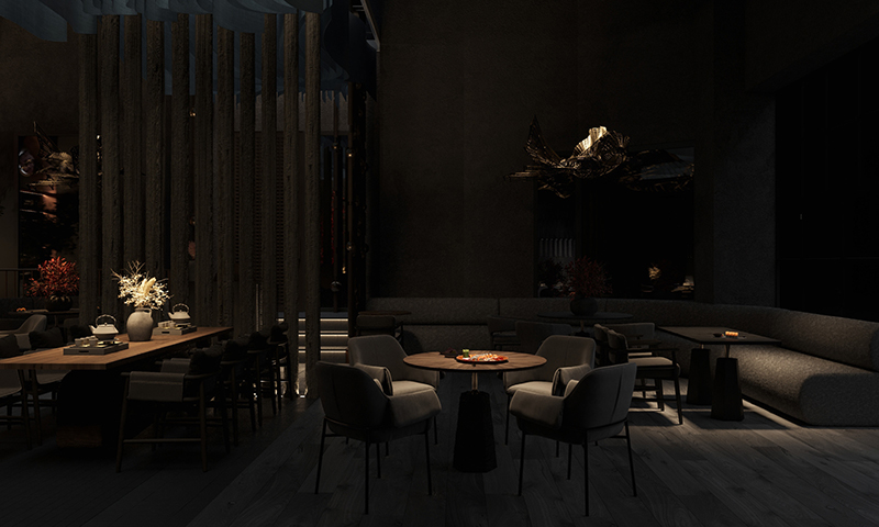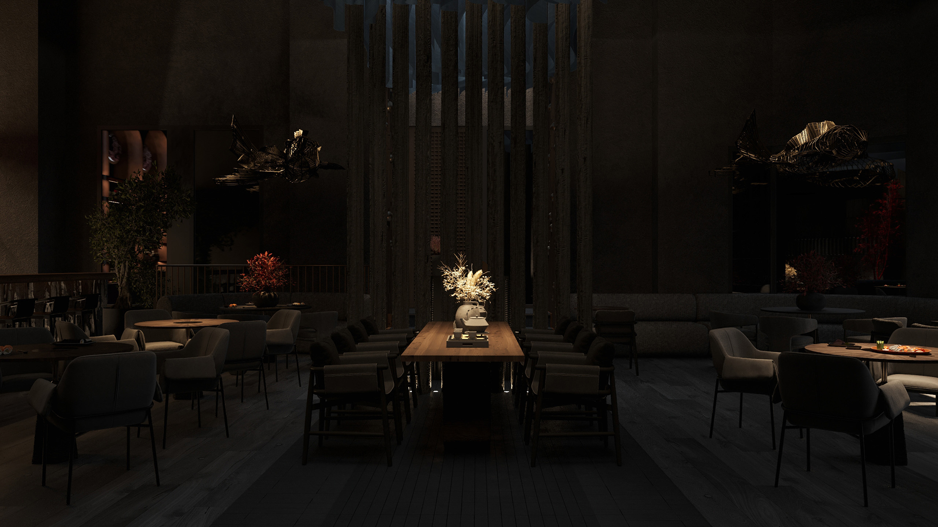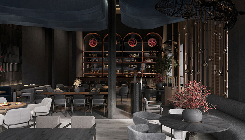 The concept merges Asian influences with modern design elements to create a warm, immersive space that feels both familiar and distinctive.