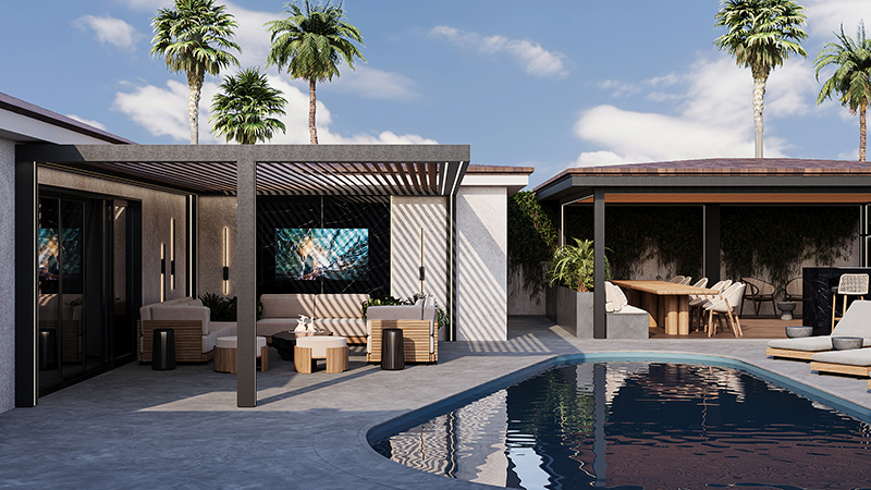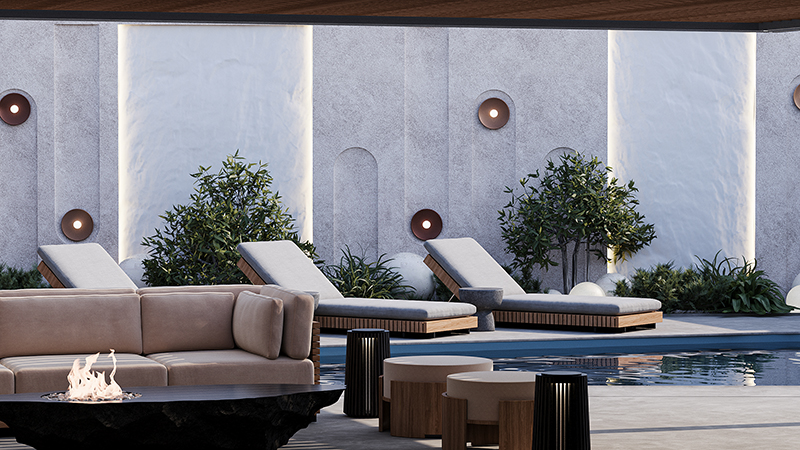 The patio, in particular, is a cornerstone of this project. It is a seamless extension of the indoor living area, designed as an oasis of relaxation and entertainment. Comfortable seating arrangements around a cozy fireplace invite homeowners and guests to unwind and connect.