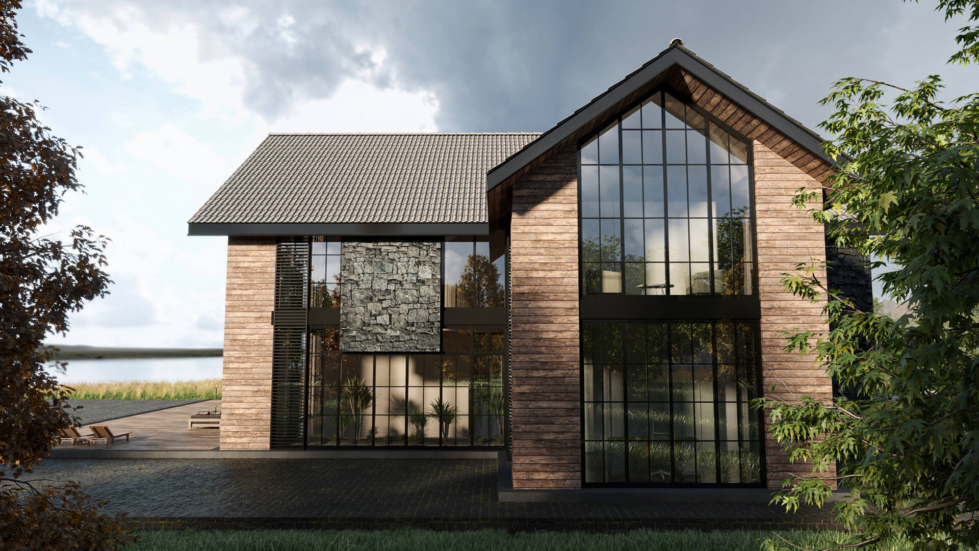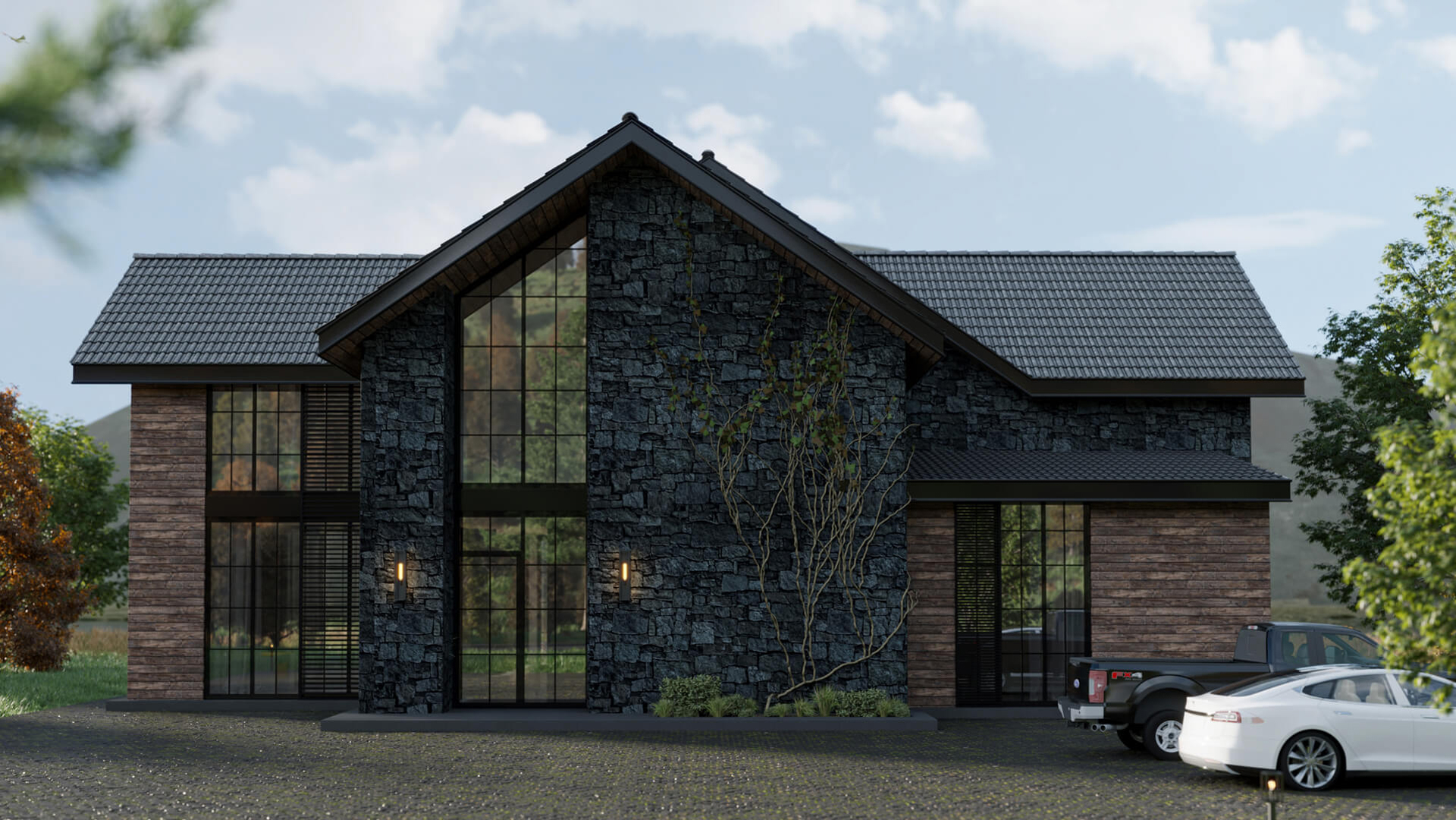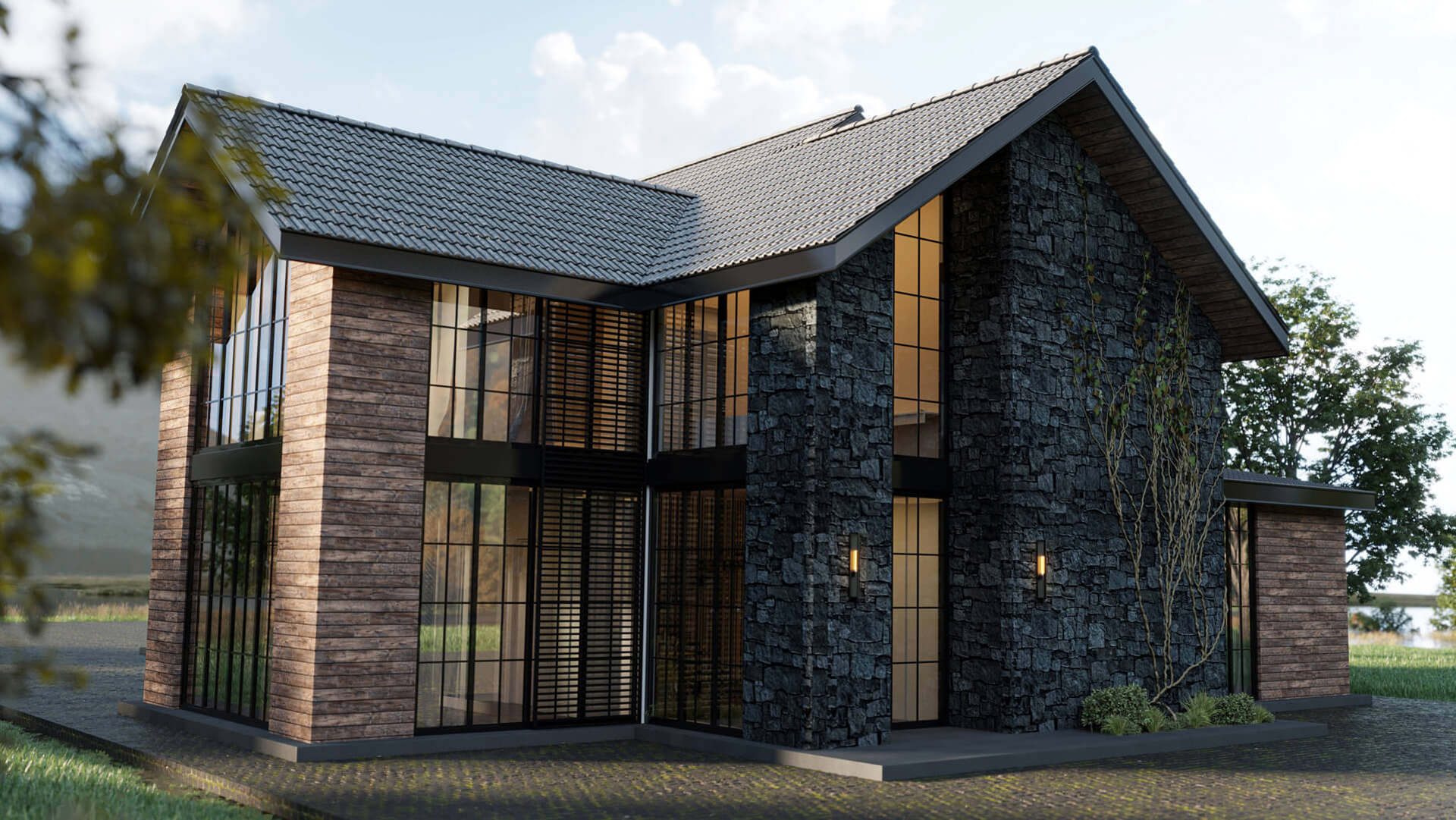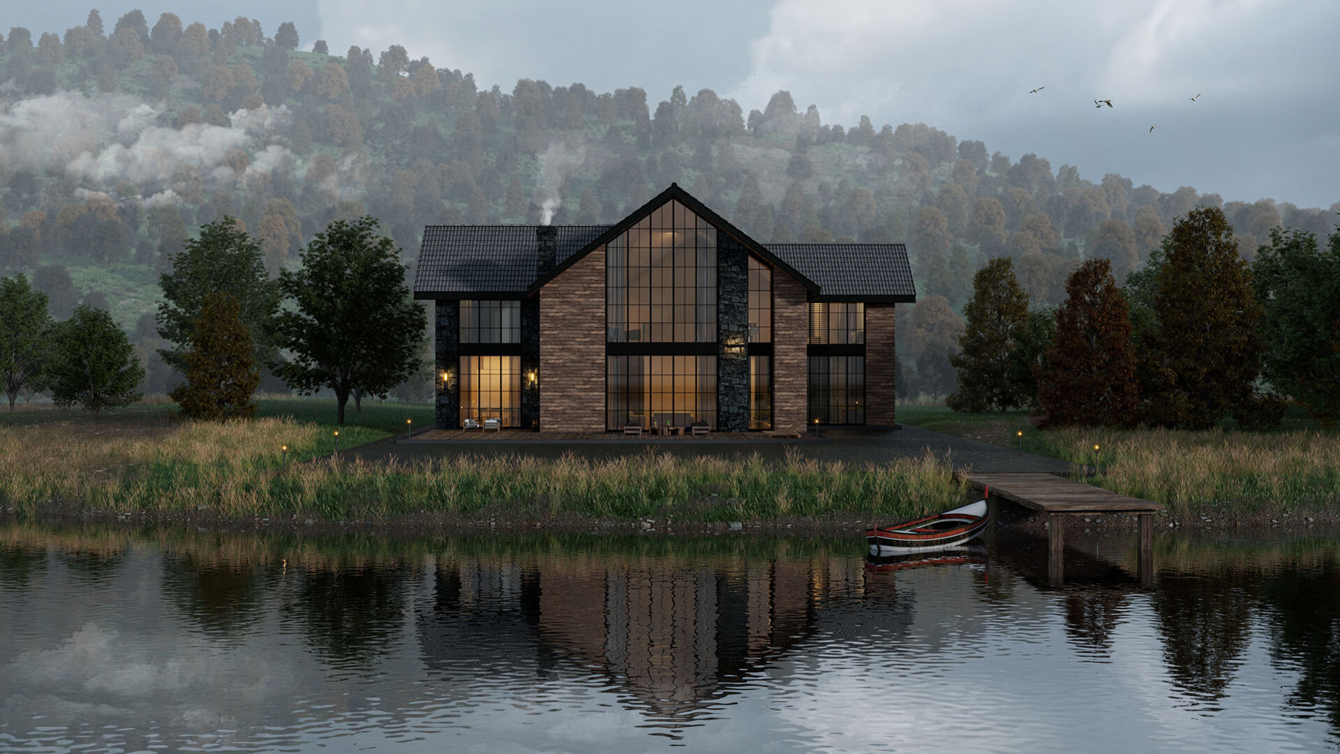 We predominantly used natural materials for both exterior and interior: wood, stone, and metal. The soft, natural colors maintain the environment's harmony.