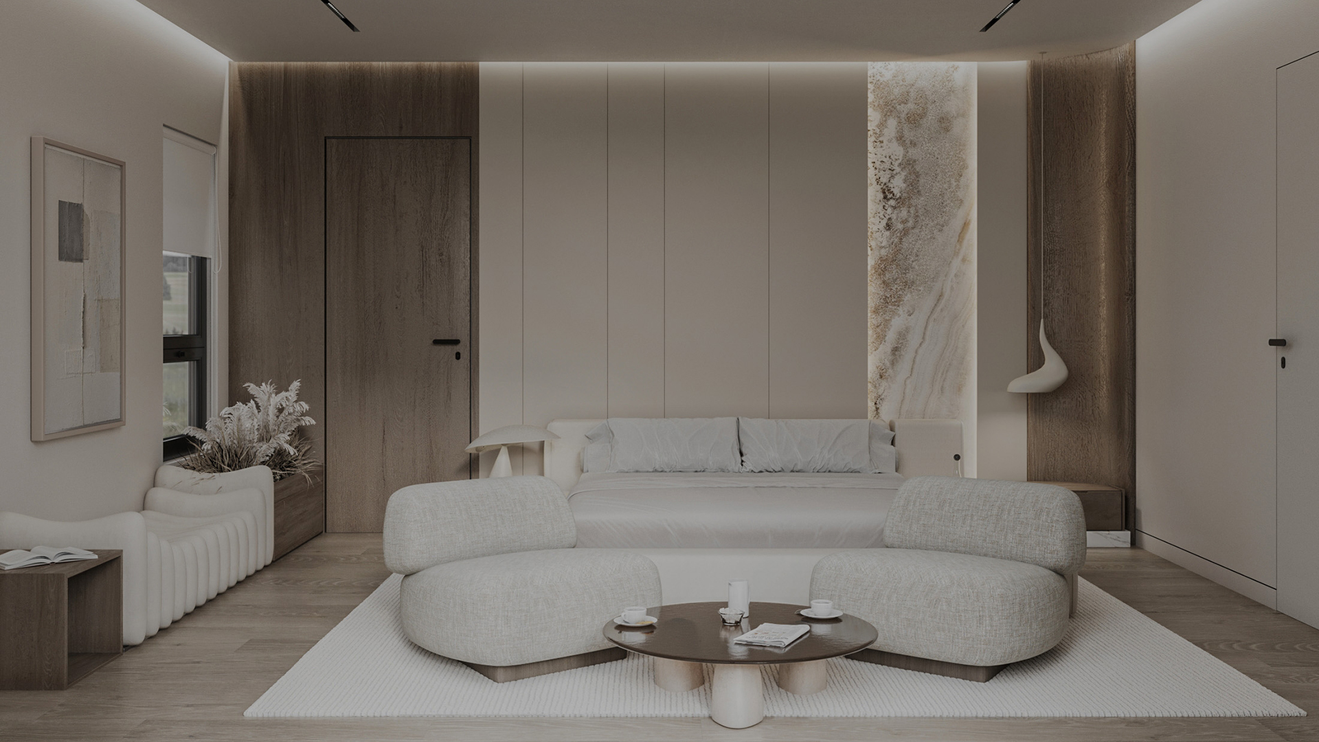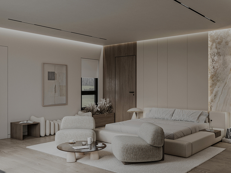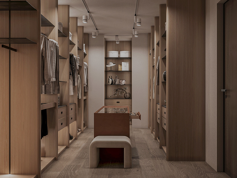 Wooden textures were woven into the design as a bold yet subtle accent, adding character and warmth to the room. This material became the thread that ties everything together, from the master bedroom to the wardrobe and bathroom, creating an intimate atmosphere that speaks to the soul.