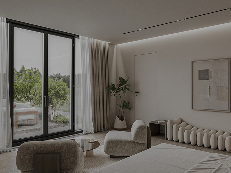 Inspired by the client’s vision and photo references, the goal was to craft a bedroom that feels like a retreat, with soft pastel tones and a contemporary touch that invites comfort.
